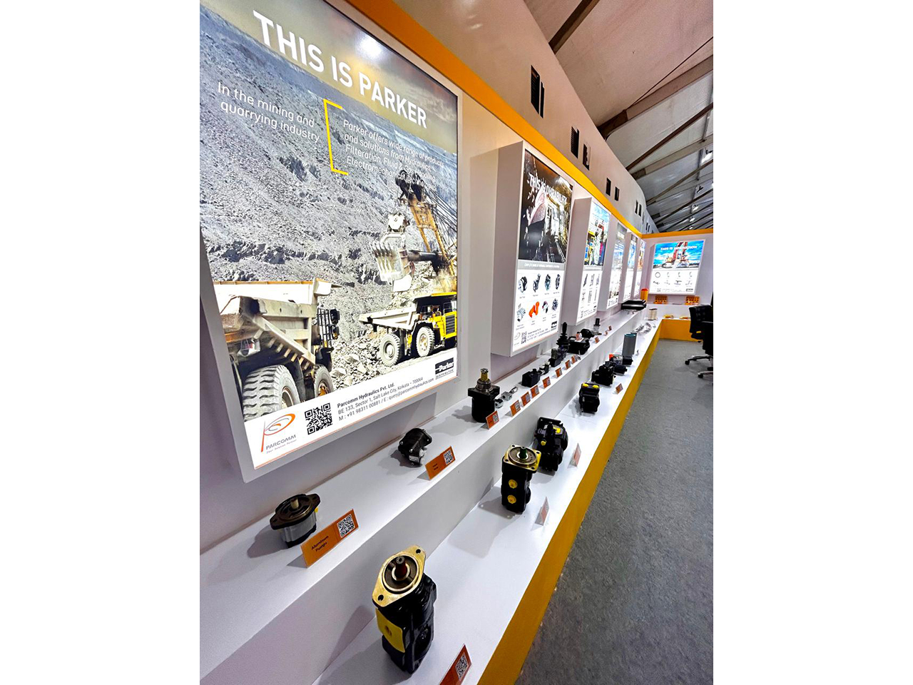 Parcomm Hydraulics participated in Bauma 2023 in partnership with Parker Hannifin India to promote Parker Products in the Construction and Mining Sector. The display stall was a showstopper for most visitors who were attracted into the stall. We were able to generate a lot of interest and awareness on Parker’s successful products and new launches. The footfall was in hundreds and the Parcomm-Parker team was in full swing throughout the exhibition.